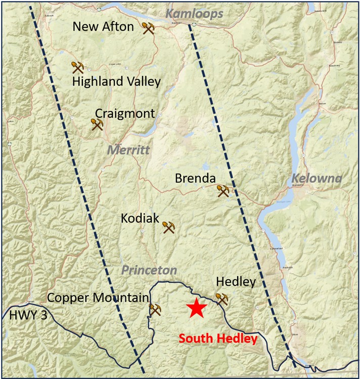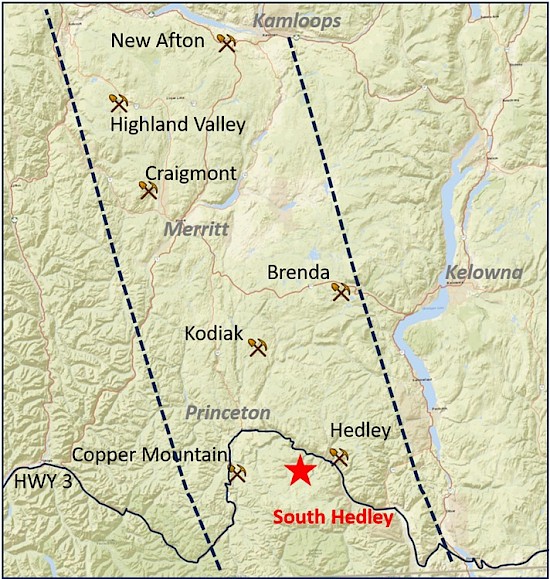 Figure 1. The South Hedley Copper-Gold Project is well situated in the Southern BC Copper Gold Belt.