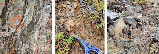 Photo 1. Photos of altered rocks near soil samples with high gold and or high copper values